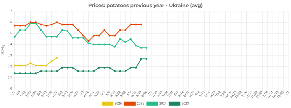 Compared to last season, potatoes in Ukraine are currently sold on average 55% cheaper than in the last days of February 2025. At the same time, most farmers plan to continue raising prices in this segment, citing the rapid depletion of potato stocks in storage facilities.