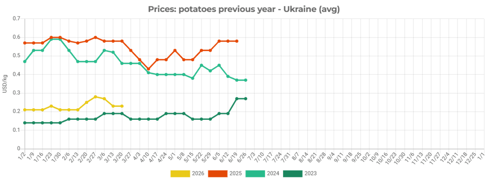It is worth noting that potato prices in Ukraine are currently, on average, 62% lower than at the end of March 2025. More detailed information on the potato market and other fruit and vegetable products in Ukraine can be found on the EastFruit website.